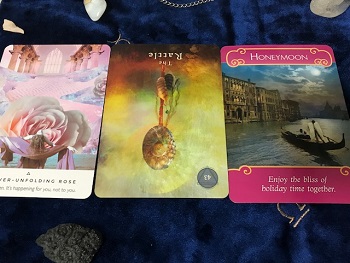ワンオラクル(1枚だけ引く)で展開しますが、呪文を囁いたり、