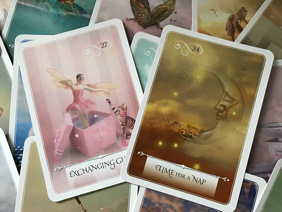 今回は、タロットカードを例にあげてみましたが、オラクルカードにもスプレッドがあります。タロットほど複雑なスプレッドは少ないですが、枚数が多いのにサイズが大きいのでシャッフルが大変です(笑)
